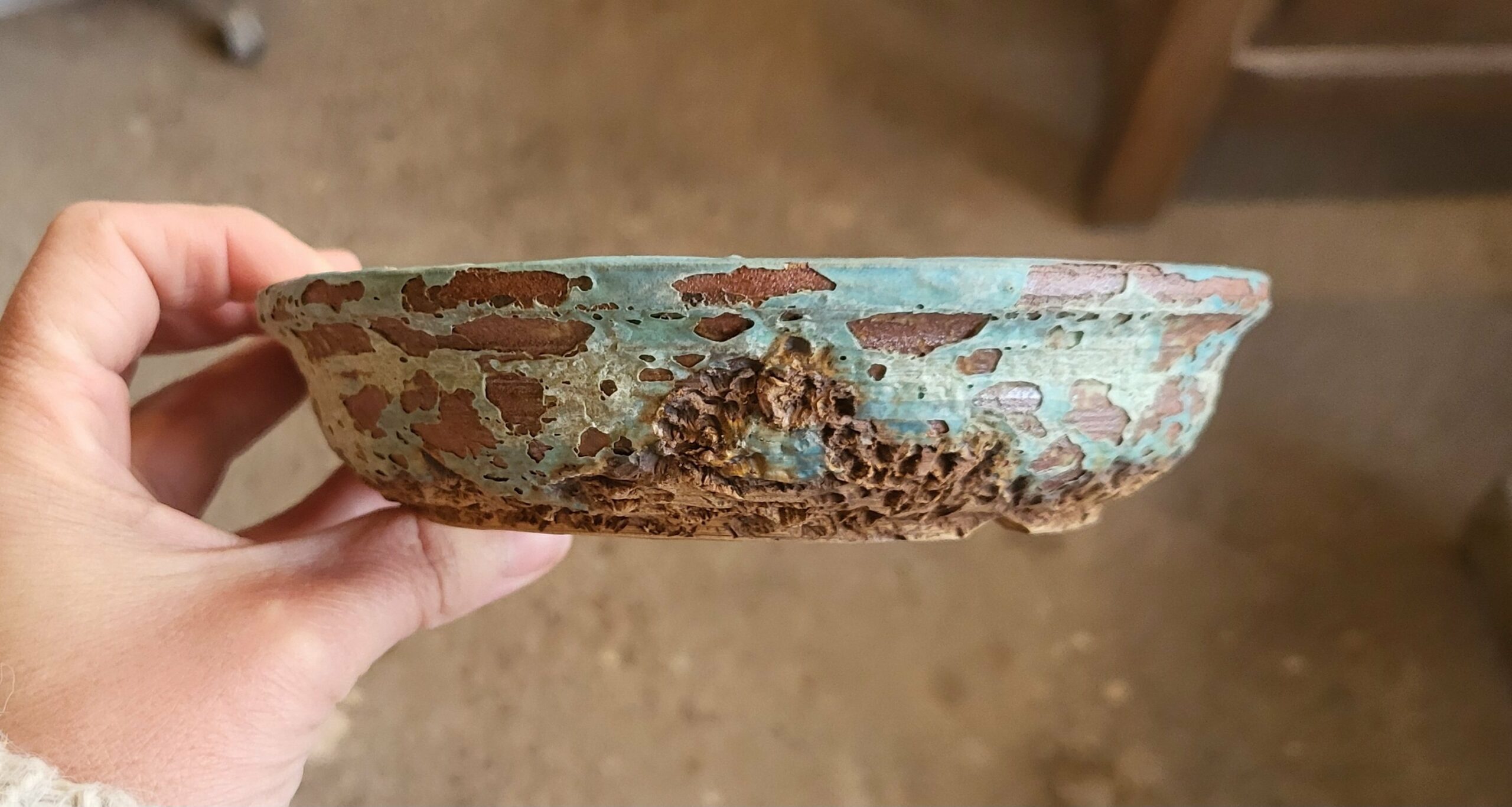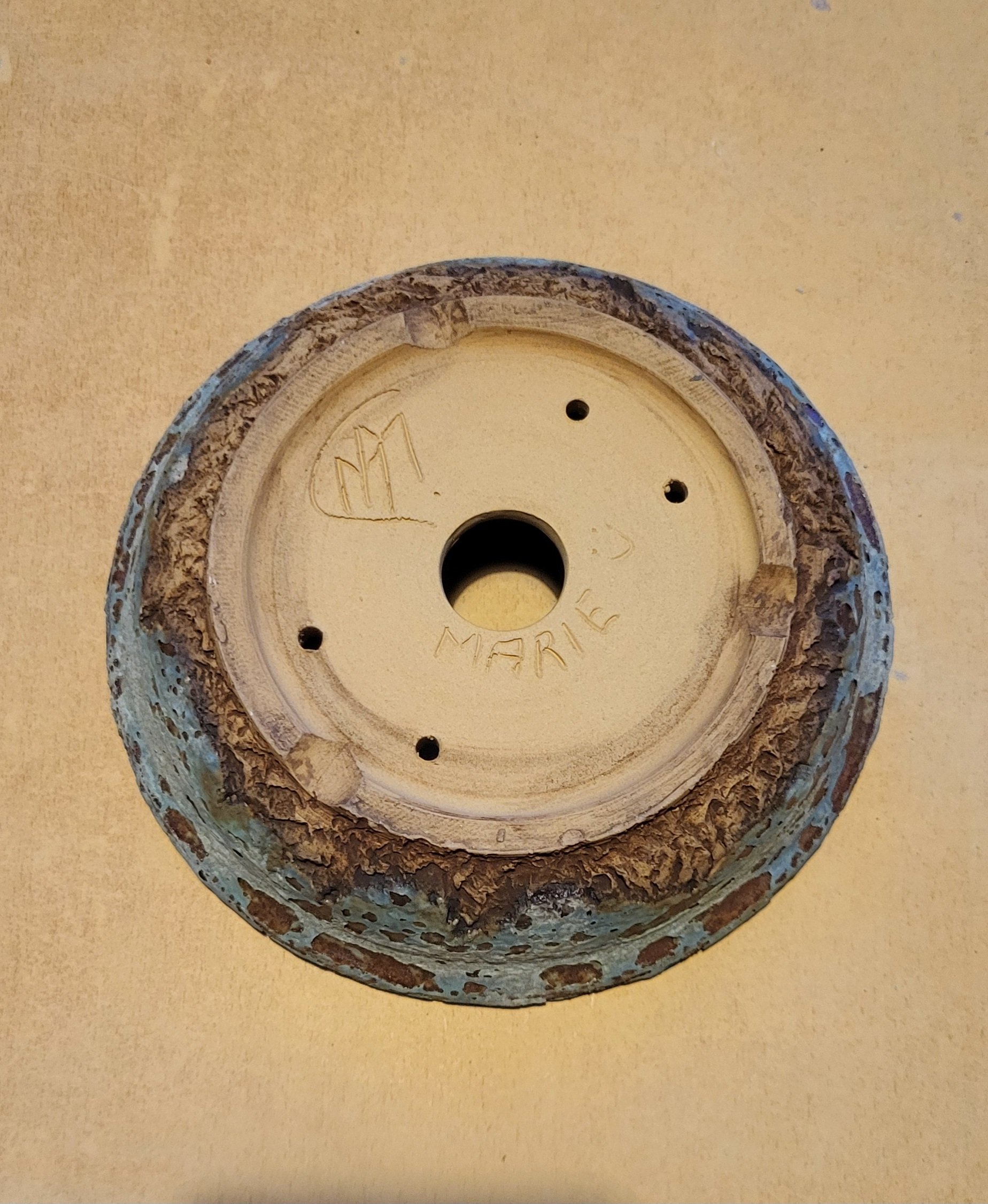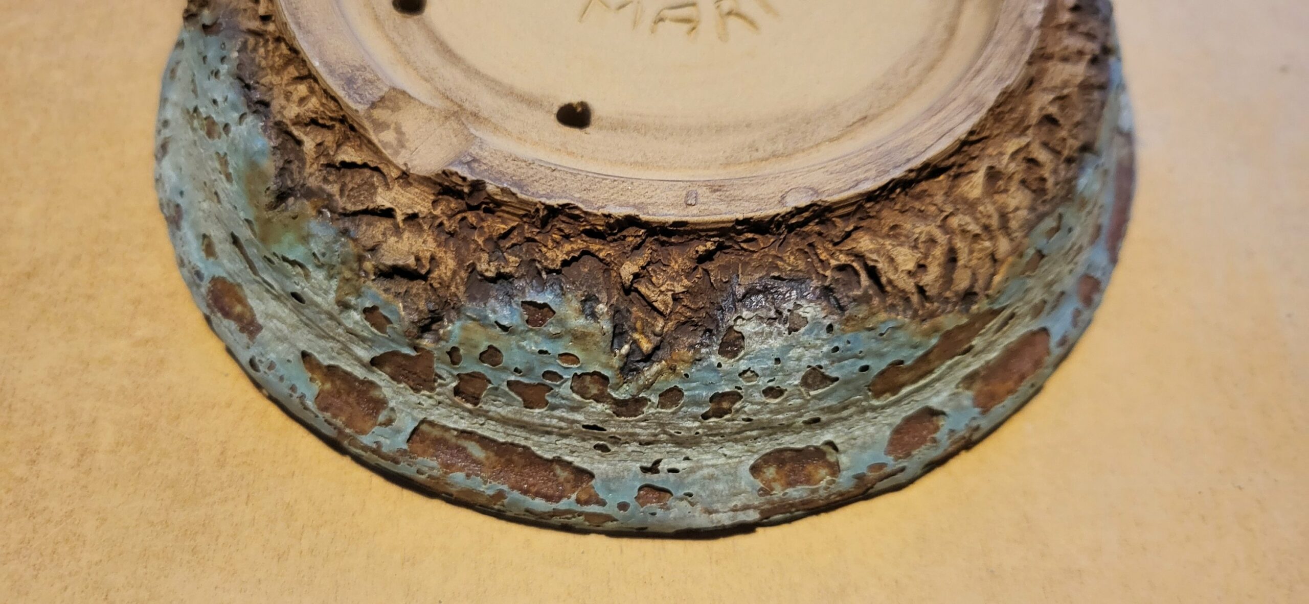 Travail au jus d oxyde sur le fond du pot.