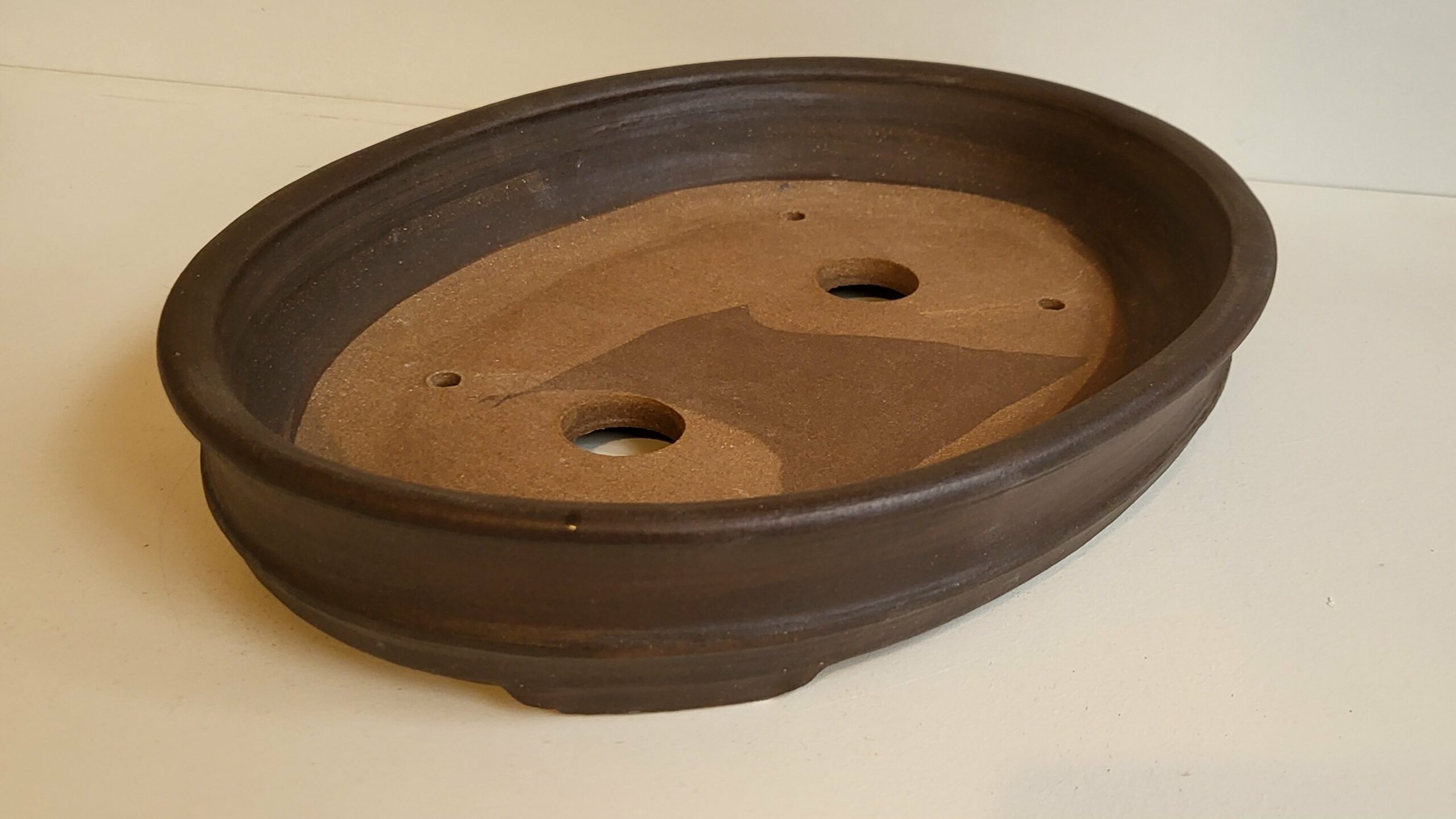 Pot à bonsaï ovale terre brute travaillée