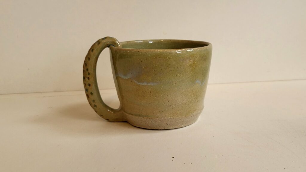 Petit pot en terres mêlées cobalt chrome .Nuancé vert, bleu, beige.
